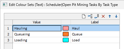 Optionally, double click (F3) to select the set that will be used to control the colour of the location trail. The colour set maps colours to text strings or numeric ranges. This determines the colour for each value in the colour field. Right click (F4) to create or edit a colour set.