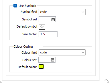 Double click (F3) to select the set that will be used to control the symbol that will be displayed. The symbol set maps symbols to text strings or numeric ranges. This determines a symbol for each value in the chosen (mapped) field. Right click (F4) to create or edit a symbol set.