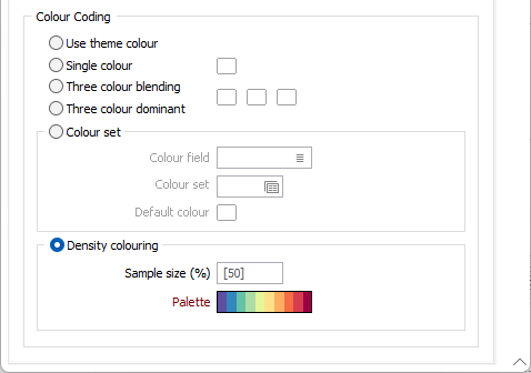 Optionally, you can use the colour range defined in a palette to colour code the points in the diagram.