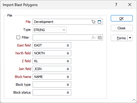 (Optional) Double-click (or click on the list icon) to select a field in the input file that contains block type values.