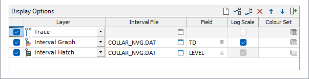 In the Display Options grid, you can configure the layers in the data to be automatically loaded in Vizex when the database is created, imported or modified.