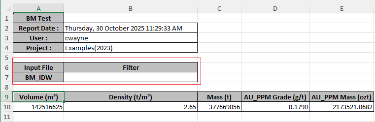 The Block model name and filter used for the Block Model Report are now written to the report file.