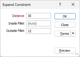Направление, в котором будет происходить расширение ограничения, зависит от значения Расстояния, введённого в диалоговом окне. Например, положительное значение 20 приведёт к расширению наружу - как показано ниже: