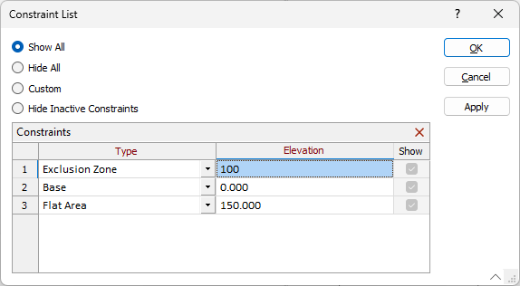 Созданная зона исключения будет отображаться в списке Список ограничений, и значение Высота можно отредактировать.