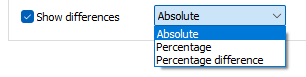 Absolute - Calculates the difference relative to the reference design in absolute values.