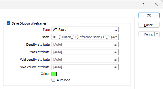 Select the option if you want the dilution solid(s) wireframe to be automatically loaded to Vizex on completion of the evaluation.