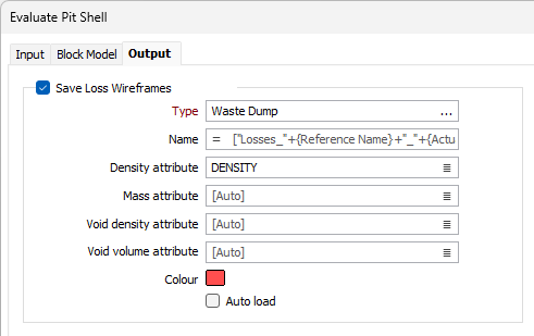 Select the option if you want the loss solid(s) wireframe to be automatically loaded to Vizex on completion of the evaluation.