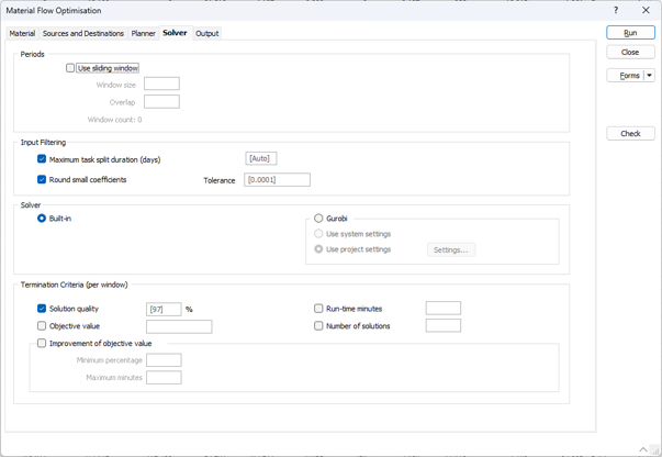 Оптимизатор переносит материал между источниками и пунктами назначения, чтобы достичь заданной цели с учётом установленных ограничений