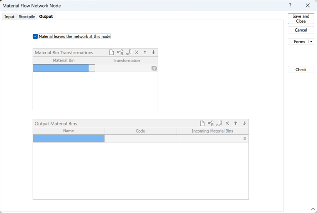 Количество материала в бинах начальных узлов задаётся атрибутами задачи