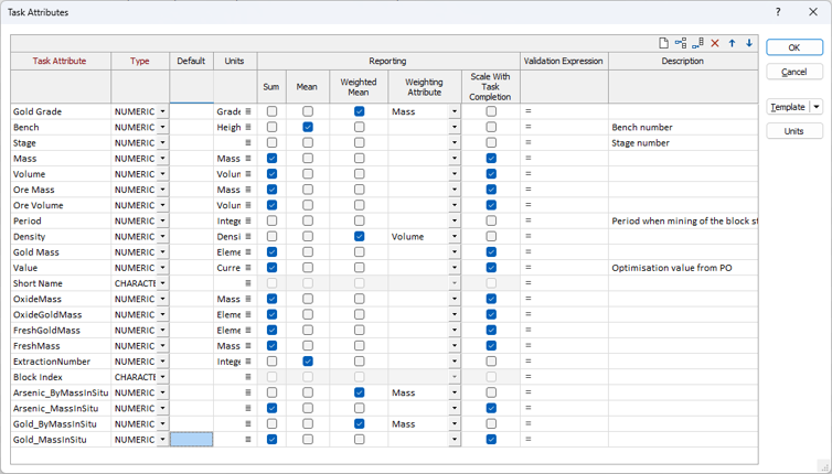 Параметры плана: Атрибуты типа задач