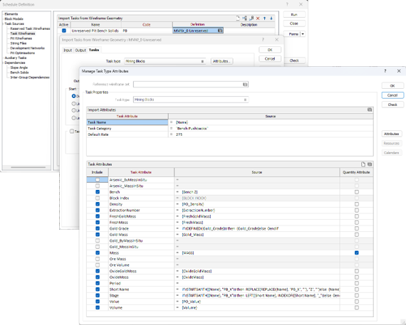 Применяет параметры проектирования к источникам задач для подготовки каркасов для задач («выемочные блоки»)