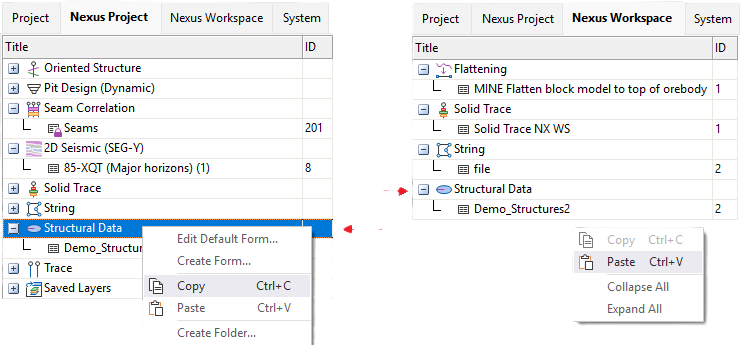 You can click and hold the mouse to select and then drag and drop form sets and folders from one folder to another, as well as from one tab to another where supported - such as between Project and Nexus Project.
