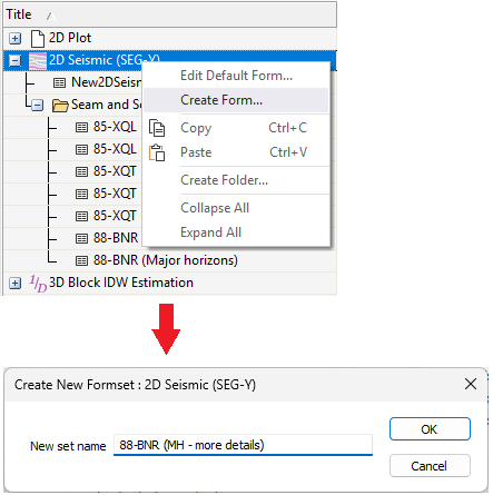 The Create Form option on the right-click menu is used to create a form set for Vizex nodes. If you right click on a node and select Create Form, the Create New Form Set dialog for the selected node will be displayed. You can enter a name for the new form set and click OK to save it.