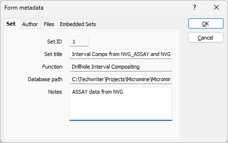 The Form metadata form contains a number of tabs displaying information on the form set, such as the Author of the form, associated Files, and any Embedded Sets.