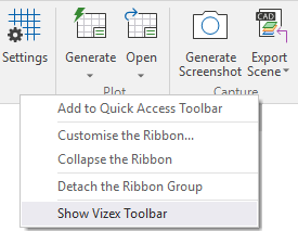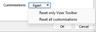 Select this option to revert any customisations you have made to the Vizex Toolbar and its groups