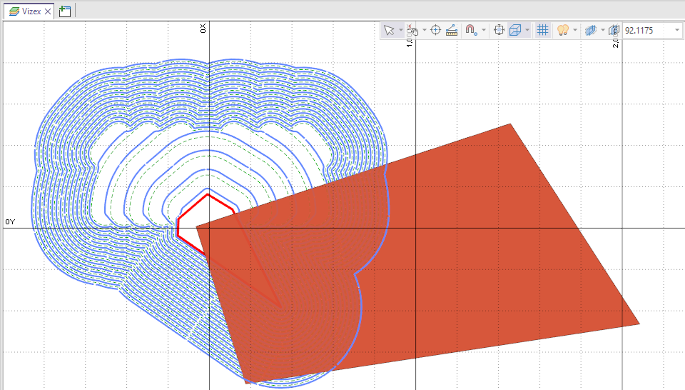 Using expressions in the Slope and Berm Width fields for variable constraints, you can input a rosette for face angle within each zone. The application will calculate the face angle from the average bearing of each segment plus x distance on each side.