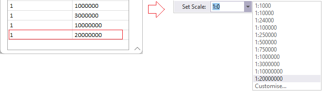 Когда вы добавляете масштаб в таблицу и нажимаете ОК, новый масштаб становится доступен для выбора в меню Задать масштаб.