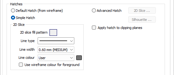 В связи с тем, что вы, возможно, захотите использовать расширенные опции в режиме 2D Срез, а не Силуэт (или наоборот), либо работать только с одним из атрибутов (например цветом переднего плана), вы можете задать значение по умолчанию для каждого атрибута штриховки.