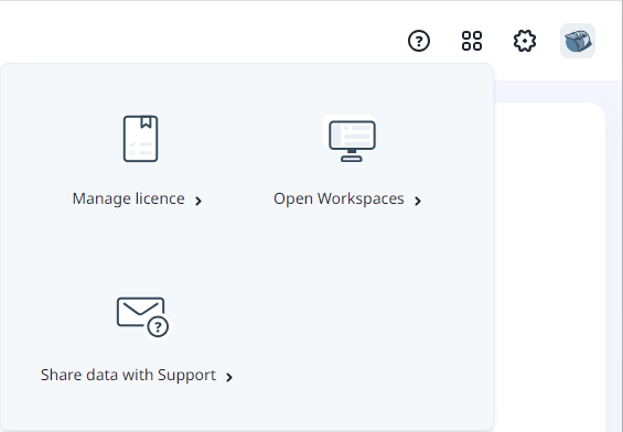 Manage Licence - Select Manage Licence to manage your cloud licence. See: Manage Licences.
