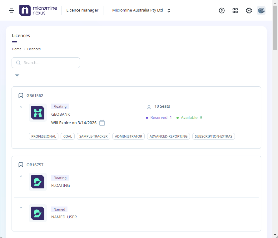 For information on managing licences with Nexus - Manage Licence, see Manage Licences.