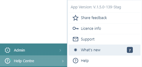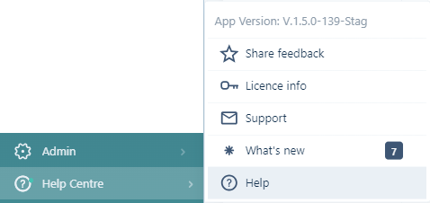 ● A small green circle on the Help Centre logo indicates that new and improved features were recently added. Click on the What's New menu option for more information: