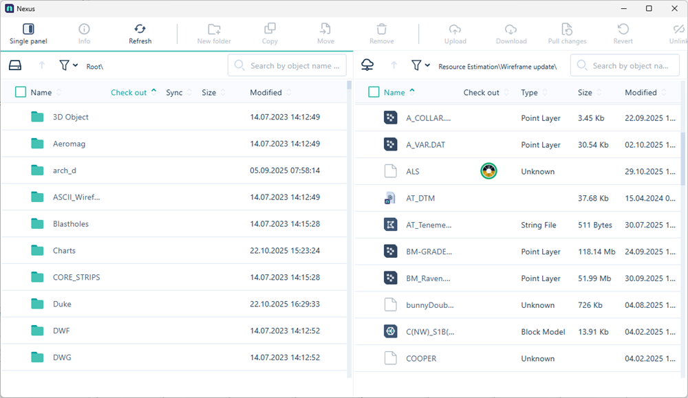 Click to Download files from the Nexus project folder to a local project folder or sub folder. Using the Download button will create a copy of the existing file without overwriting it.