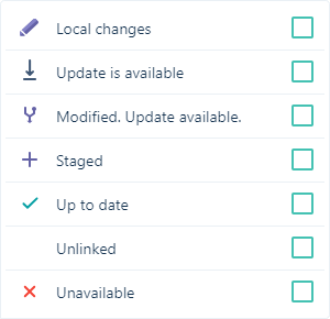 Click the Filter button to open a list of options that can be used to filter the display in the panel. Any files not matching the selected option/s will not appear in the file list.