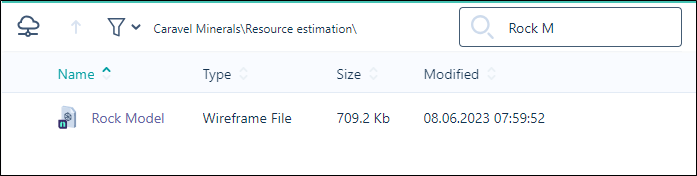 Search for the object name or type of any file that matches or partially matches the search string you have entered here. If any part of the search string does not match, no results will be found. For example, the string 'Rock M' will find a file called 'Rock Model', but the string 'Rock Max' will not. Search results for matching files are displayed in separate tabs.