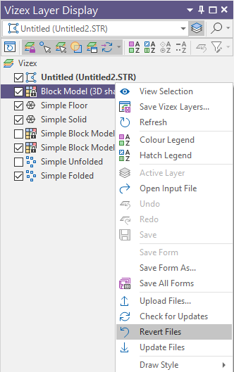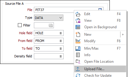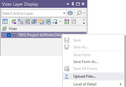 To upload the files associated with a Vizex layer, right-click and select Upload File: