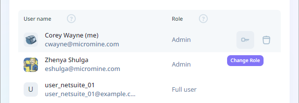 The Change Role option is used to modify the assigned Role for a user. To do this,