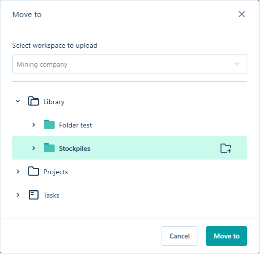 3. Navigate to the project or folder to which you want to move the file(s) or folder.