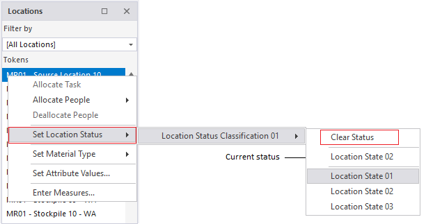 - Сбор данных. Щелкните правой кнопкой мыши по участку в группе данных и выберите Задать статус участка. Опция Очистить статус будет доступна для выбора в верхней части списка статусов участка. Текущий статус участка будет располагаться ниже опции Очистить статус.
