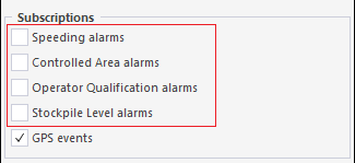 | Speeding alarms | Enables subscription to Speeding alarms. |