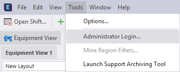 Administrator Options in the Event Editor use a shared Administrator login and PIN. Currently, the ability to set Mine Region Filters is the only administrator option: