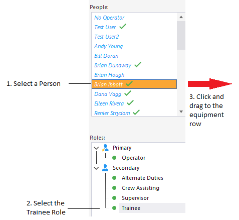 - Drag and drop the person's name onto the appropriate Equipment row.