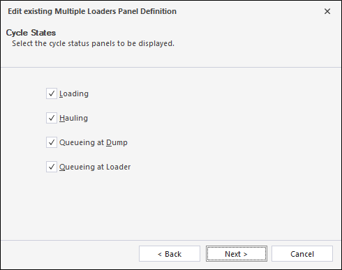 Click Next and use the Cycle States page to select the cycle status panels to be displayed.