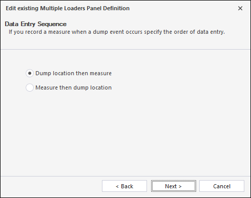 Click Next and use the Data Entry Sequence page to configure the sequence in which data entry occurs when recording a measure on a dump event.
