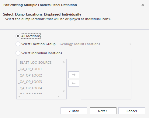 Click Next and use the Select Dump Locations page to configure the Dump Locations for the panel.