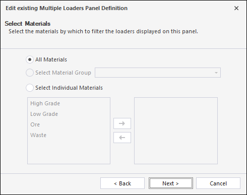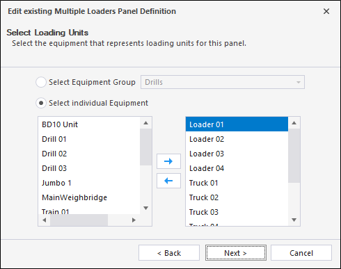 To edit the definition of a Multiple Loaders and Trucks Panel: