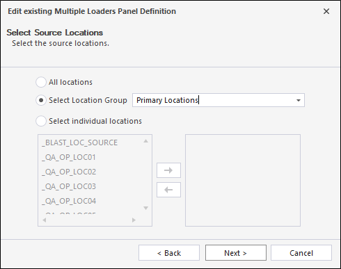 Use the Select Source Locations page to configure the source locations to be shown in the panel.