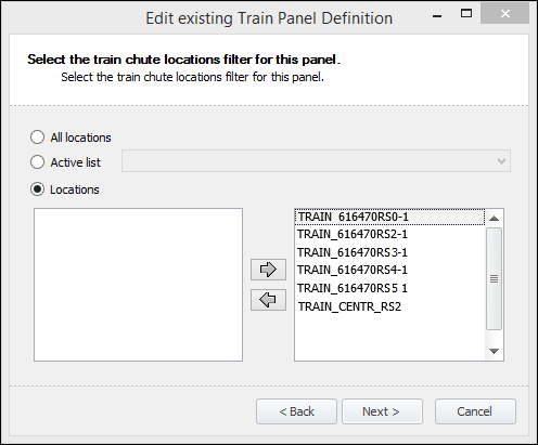 These Chute locations are then available for selection when you create or edit a Train panel in Data Acquisition.