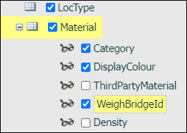 - Select Configuration | Location | Material and select the WeighBridgeID attribute: