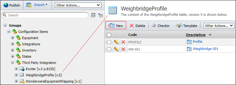 - In Reference Edit, click on Groups | Configuration Items | Third Party Integration | WeighbridgeProfile.