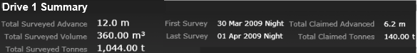 | Total Surveyed Tonnes | Sum of all the surveyed tonnes (Survey | Volume * Specific Gravity). |