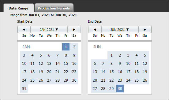 When periods are defined, if you use the Range selector to select a range of days that includes more than one period, the range will automatically include all days within those periods.