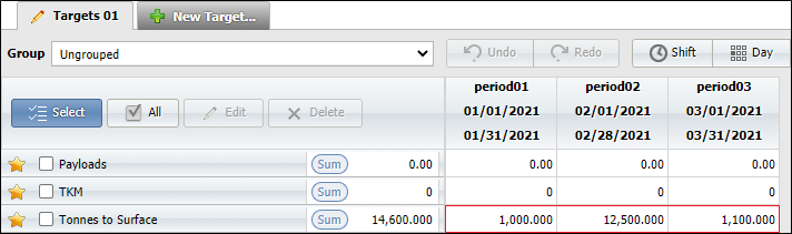 When you enter target values, you define the target values for a specific period of time. The chosen time-frame can be a pre-configured production period or a user-defined date range.