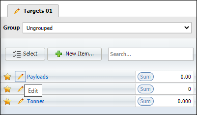 To modify a target item, select the item you want to modify and click the Edit icon for the item: