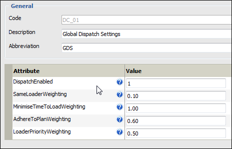 The weightings that are applied to the inputs of the Dispatch system, and the manner in which Dispatch is enabled (if at all), are configured via a Dispatch Configuration reference group in Reference Edit.