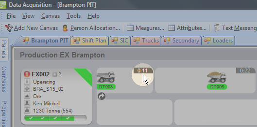 In the example above, for example, we have 11 seconds of load time left for truck DT003.