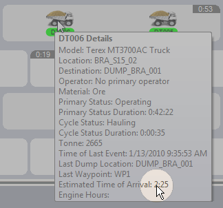 On the Loaders and Trucks panel, for example, when you hover the mouse over a truck, the details of that unit are displayed: